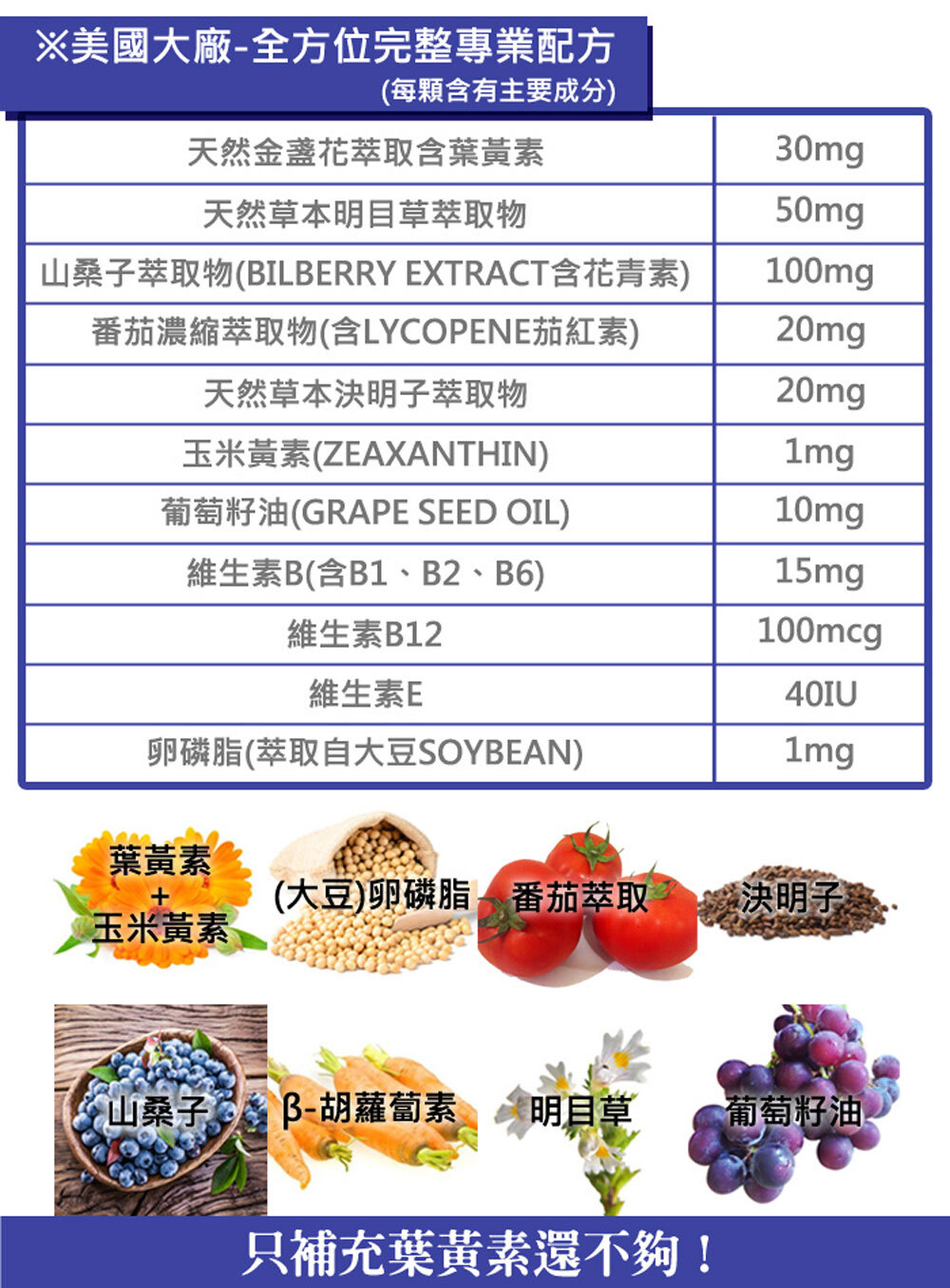 ✔️添加5大草本成分:葉黃素、玉米黃素、決明子、山桑子、明目草